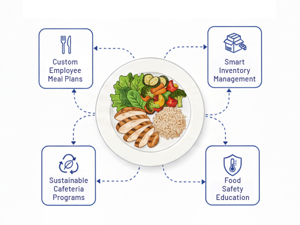 Our service ensures your food operations run efficiently, sustainably, and cost-effectively. We manage the entire lifecycle, from inventory to service, optimizing every step.